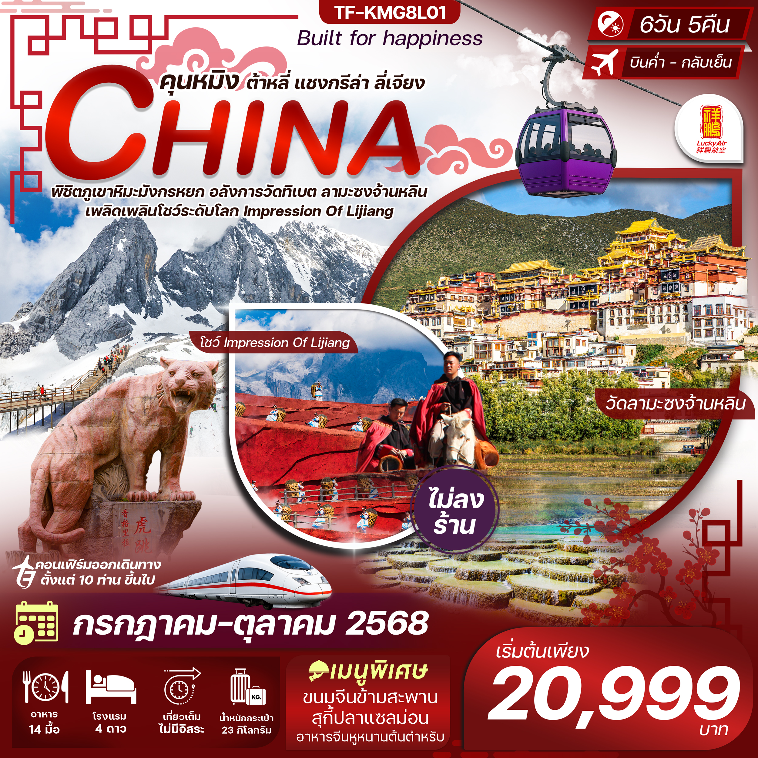 คุนหมิง-ต้าหลี่-แชงกรีล่า-ลี่เจียง คาเฟ่ทุ่งหญ้านาปาไห่ 6วัน 5คืน TF-KMG8L01