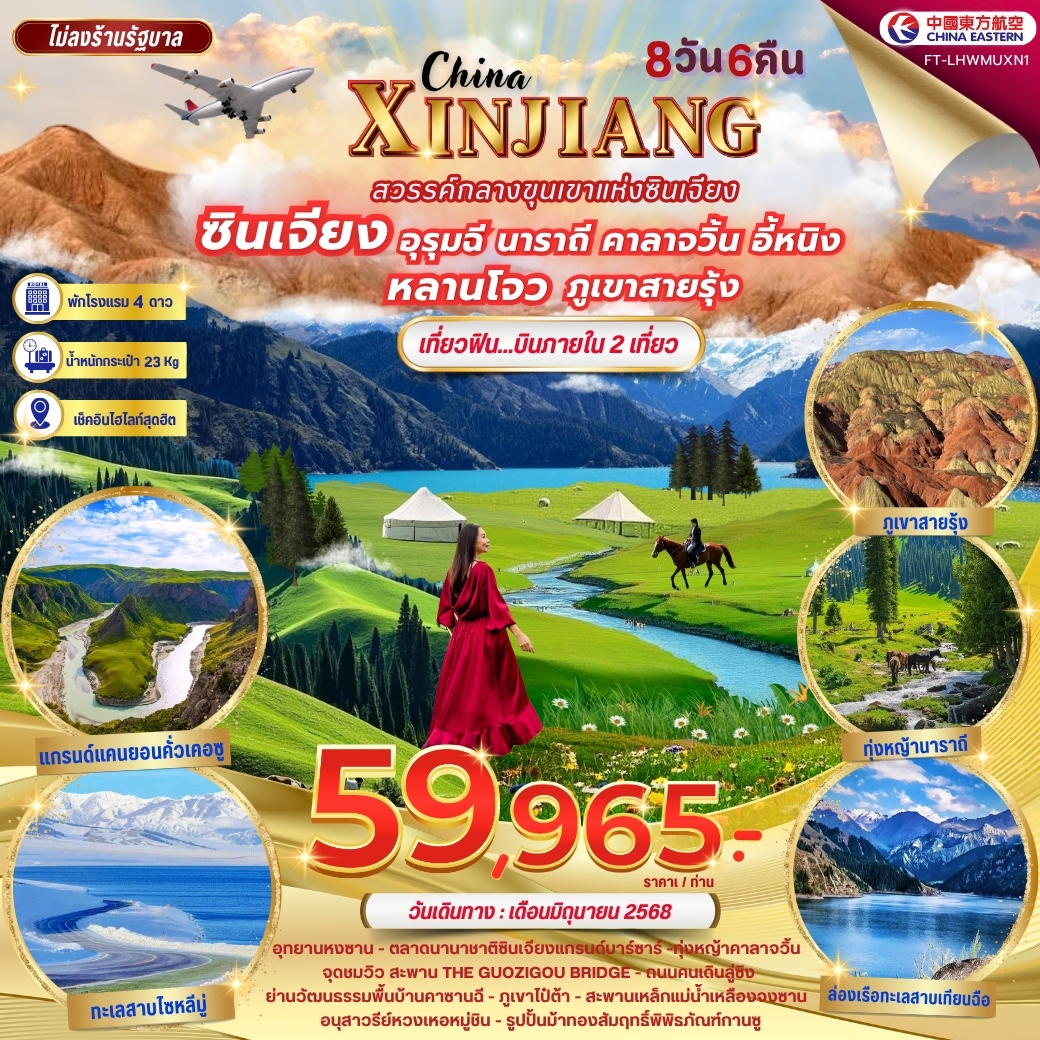 FT-LHWMUXN1-ซินเจียง อุรุมฉี นาราถี คาลาจวิ้น อี้หนิง หลานโจว ภูเขาสายรุ้ง 8 วัน 6 คืน