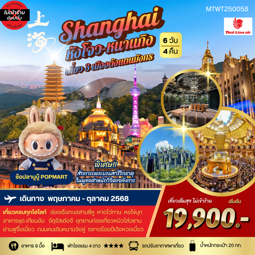เที่ยว 3 เมืองดัง แห่งแดนมังกร นครเซี่ยงไฮ้-นครนานกิง-หังโจว 6 วัน 4 คืน MTWT250058